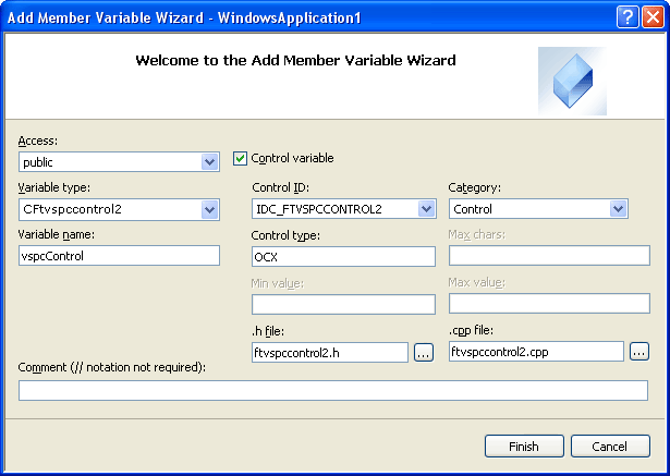 6) Specify name of variable, e.g. vspcControl and click Finish.